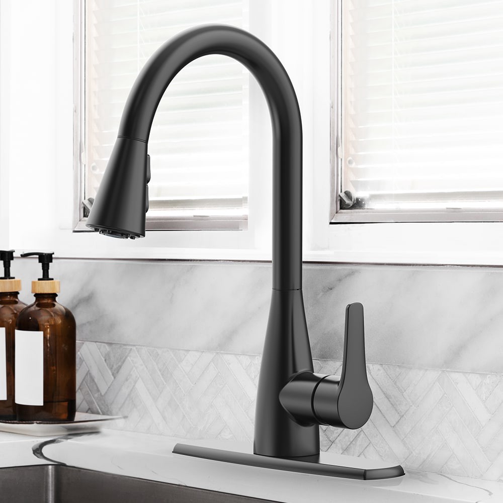 Project Source Ellesburg Matte Black Single Handle Deck-mount Pull-down Kitchen Faucet with Sprayer (Includes Deck Plate)