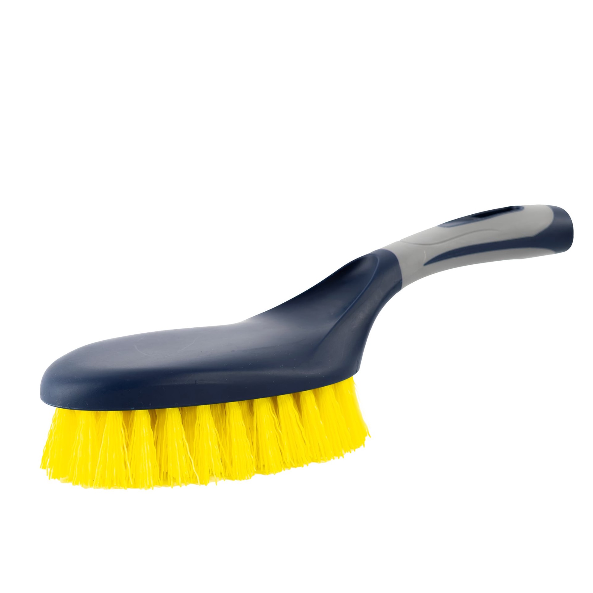 Soft grip handle with durable polypropylene bristles. Threaded handle fits standard extension poles. Tough bristles for all standard cleaning applications. Nylon Coarse Bristle Cleaning Brush.