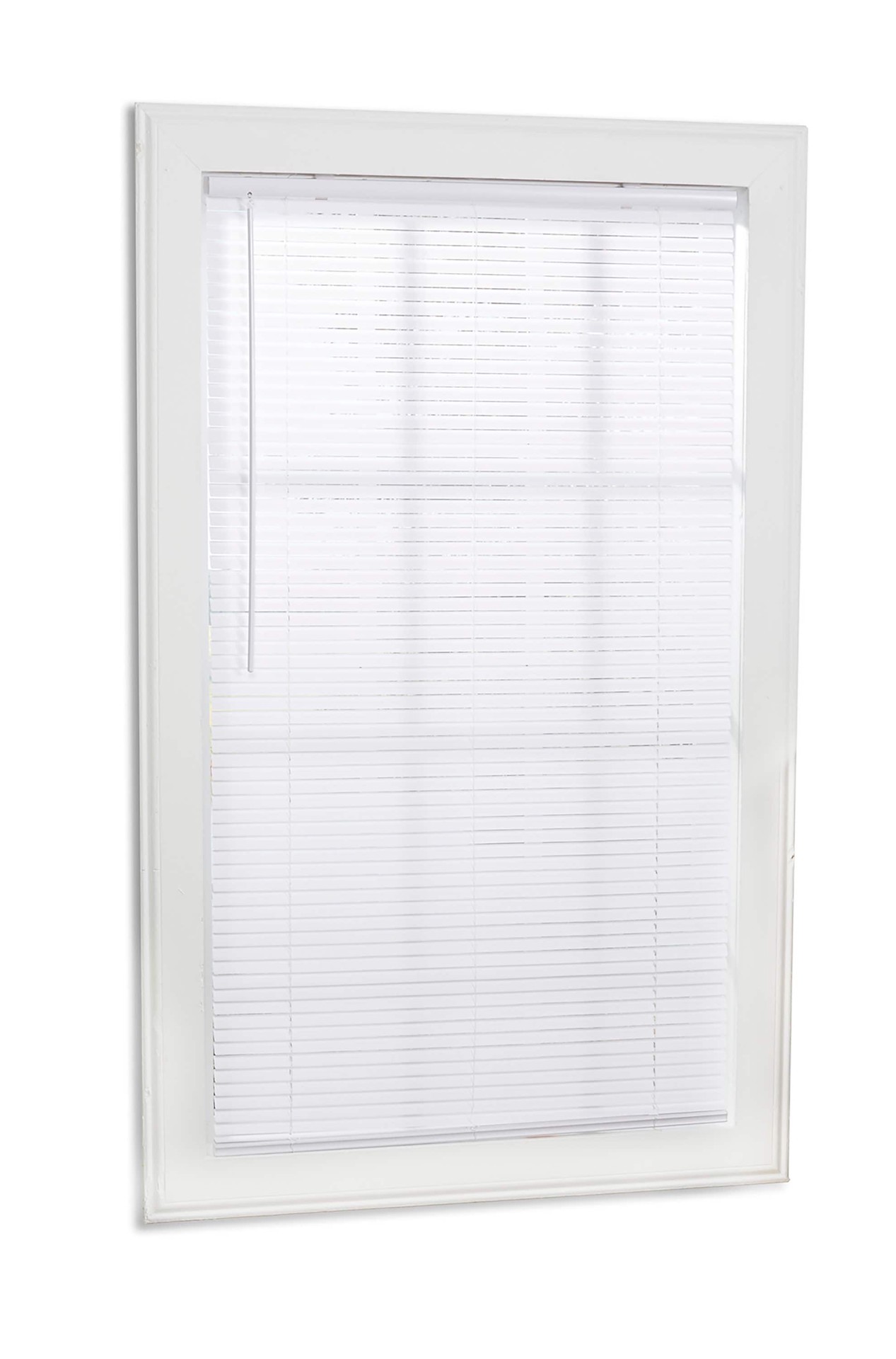 Stylish 1-in white room darkening cordless vinyl blind with a stunning low-profile headrail exhibits a sleek appearance. Vinyl material is durable, moisture resistant, and easy to clean. Raise or lowe…