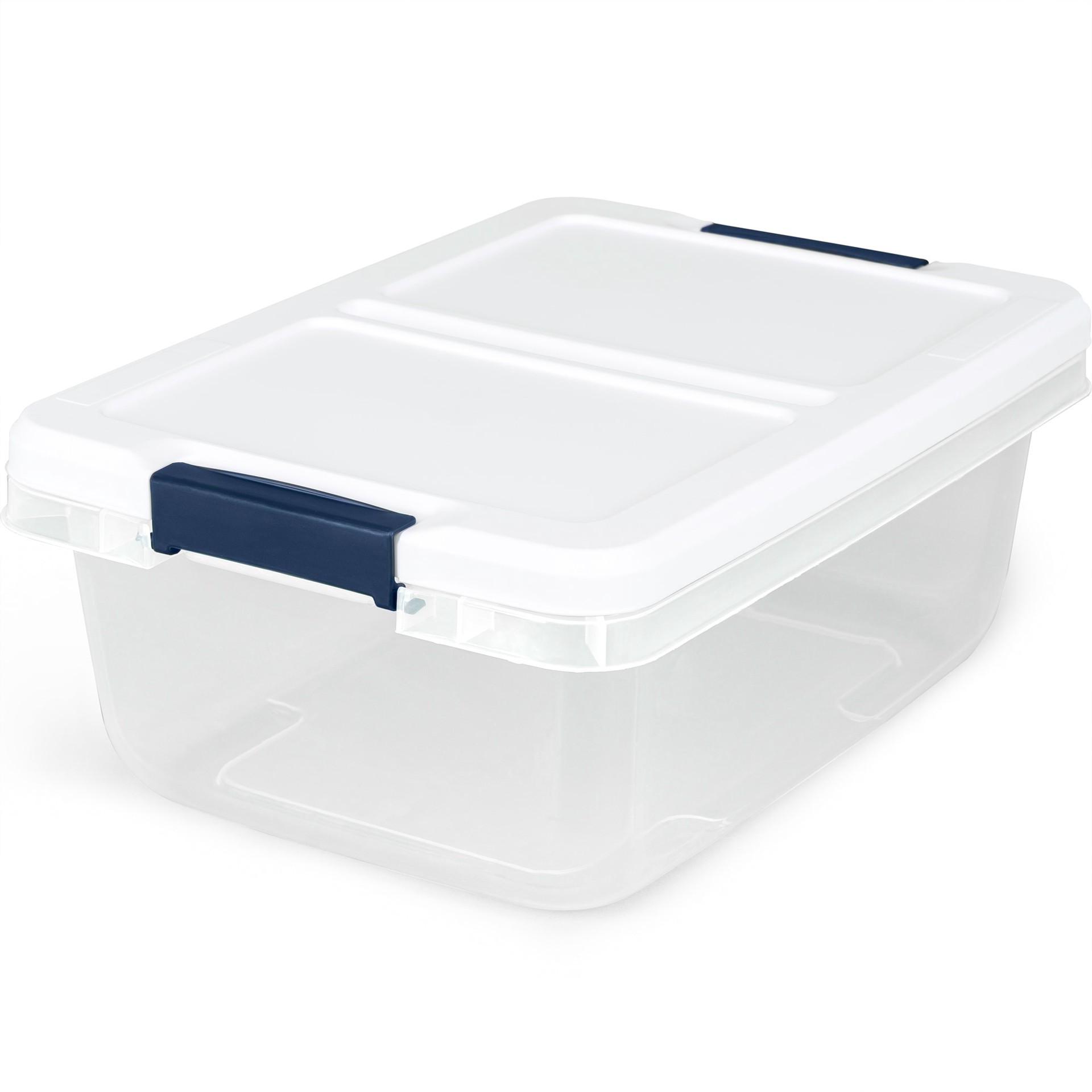 15-qt clear base storage totes with lids are an ideal large size with endless possibilities for household or garage storage ideas. Durable plastic storage bins with double rim base prevents stress and…