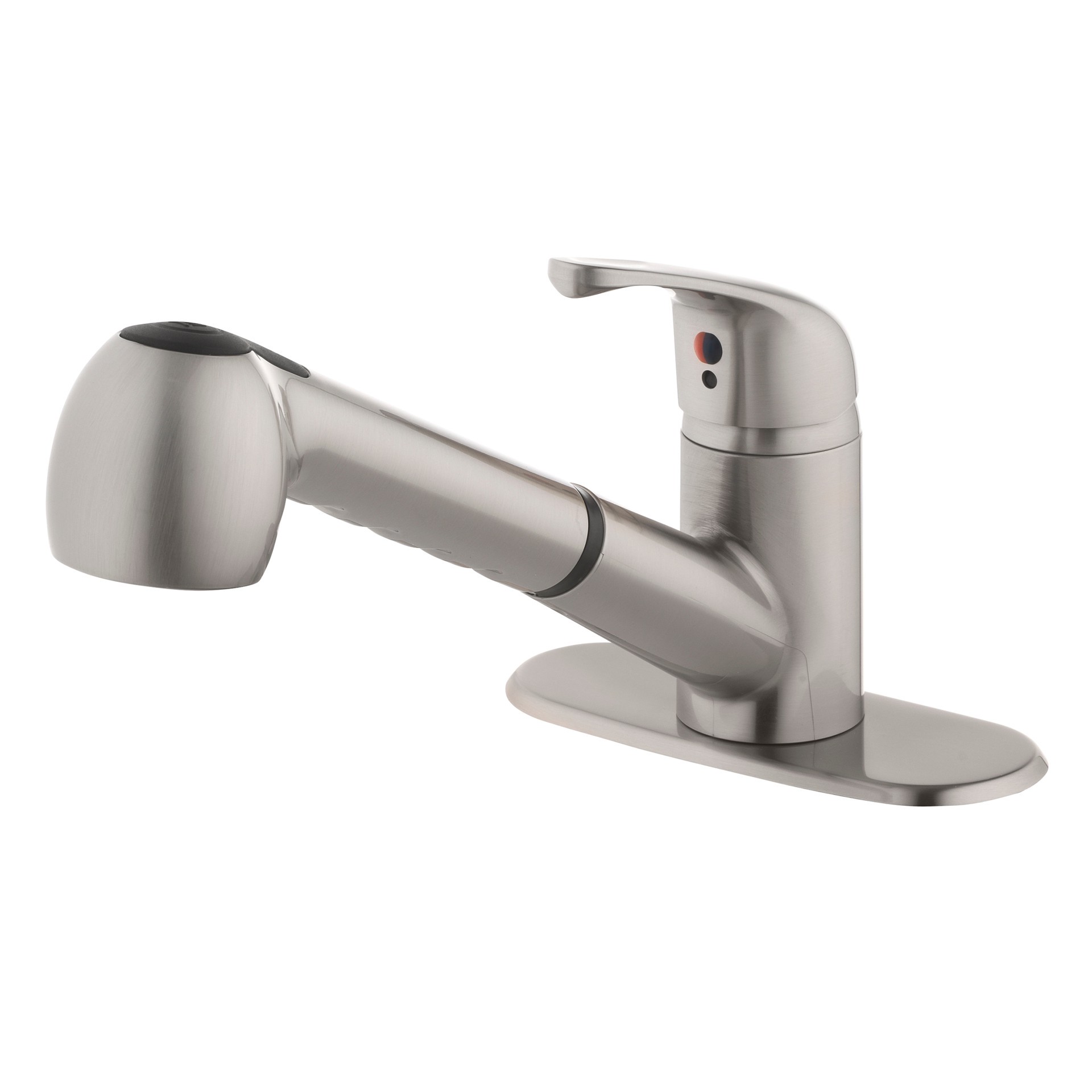 Pull-out nozzle features stream and spray settings. Utility faucet installs on either single or 3-hole sinks. Optional deck plate included for installation on 3 hole sinks. Generous flow rate for a qu…