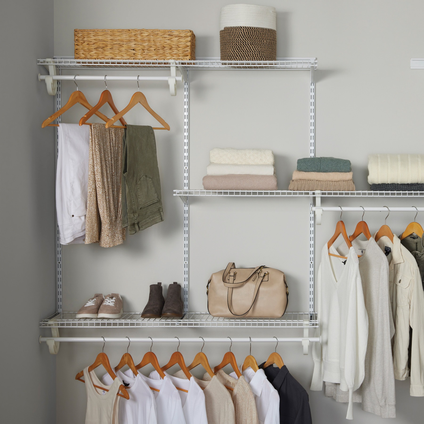 5ft - 8ft W TrackSmart Adjustable Wire Shelving Kit. Adjustable configurable track system to fit various widths--kit fits spaces 5ft – 8ft W. Kit includes (3) 4-ft shelves, (1) 2-ft shelf, (5) 4-ft ve…