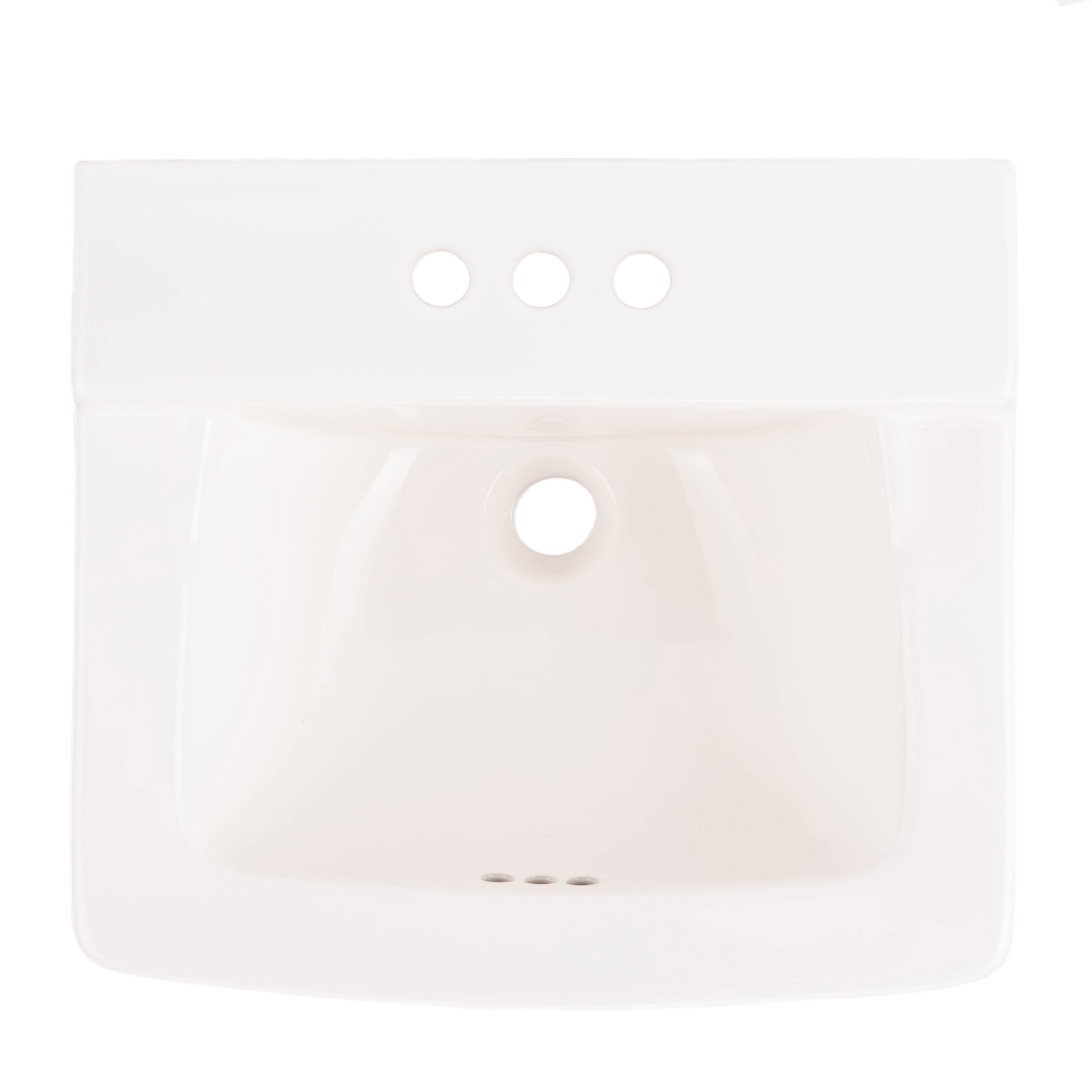 Wall hung installation. 4-In centerset faucet holes. Built-in overflow drain. Wall-mounting hardware included. Vitreous china ware construction for durability and lasting beauty. High gloss porcelain …