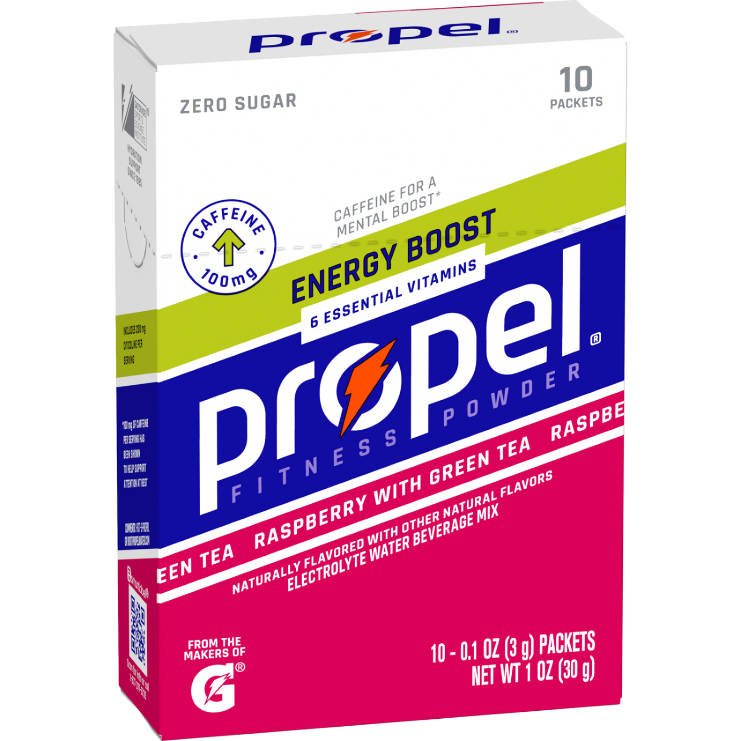 Propel Energy Boost Zero Sugar Electrolyte Water Beverage Mix Raspberry With Green Tea 0.1 Oz, 10 Count
