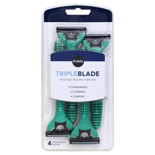slide 1 of 1, Publix Razors, Disposable, Triple Blade, for Men, 4 ct