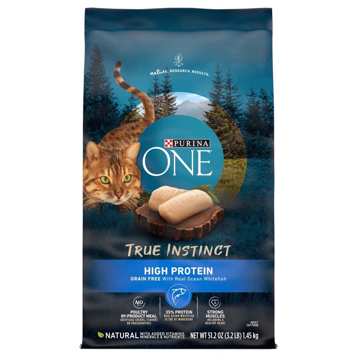 Calorie Content (calculated)(ME): 3651 kcal/kg, 356 kcal/cup. Purina One Brand True Instinct Grain Free with Real Ocean Whitefish is formulated to meet the nutritional levels established by the AAFCO …