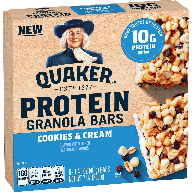 - Includes 5 (1.41 oz) Pack of Quaker Protein Granola Bars, Cookies & Cream flavor