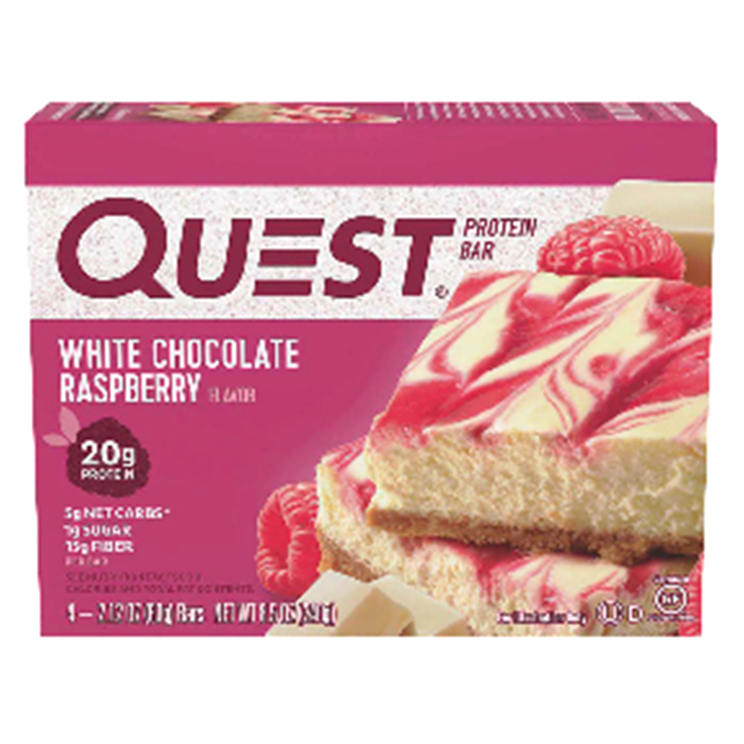 Indulge your tastebuds with the White Chocolate Raspberry Quest Protein Bar. The sweet and tart flavor of white chocolate and real dried raspberries are exactly what your cravings ordered.