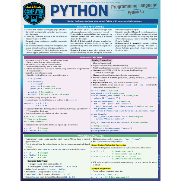 QuickStudy Guide, Python Programming Language