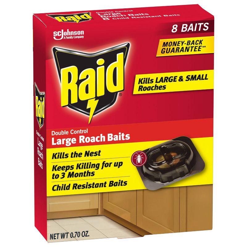Raid Double Control Small Roach Baits is an effective roach killer. Raid baits kill the roaches you see as well as the ones you don't see with 2 types of baits. After roaches feed on the bait, they re…