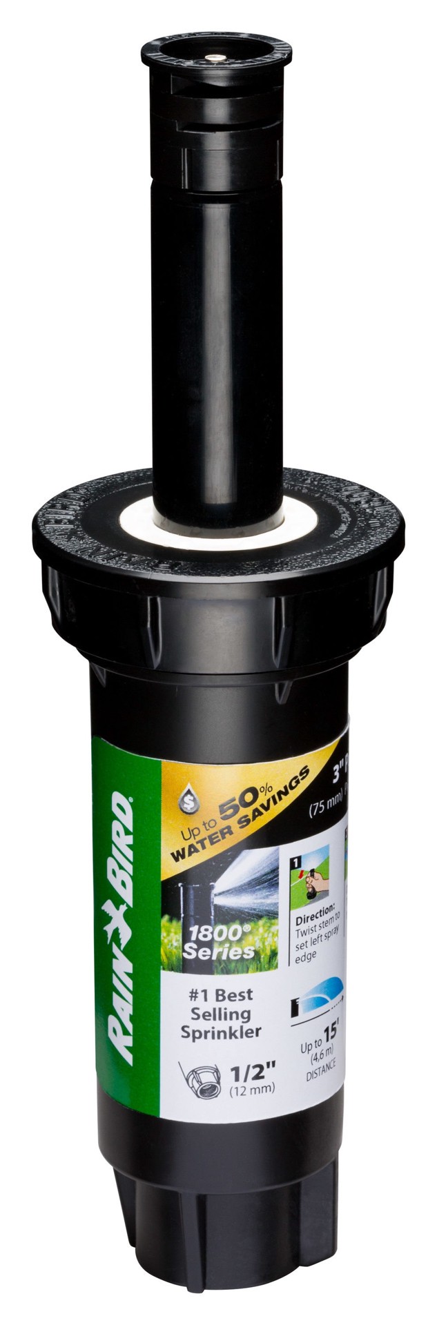 Pressure Regulating 3-in Pop-up Sprinkler. Up to 50% Water Savings. 1800 Professional Series. Up to 15-ft distance. Half pattern - 180 degrees. Heavy duty design for longest life. Pressure Regulator h…