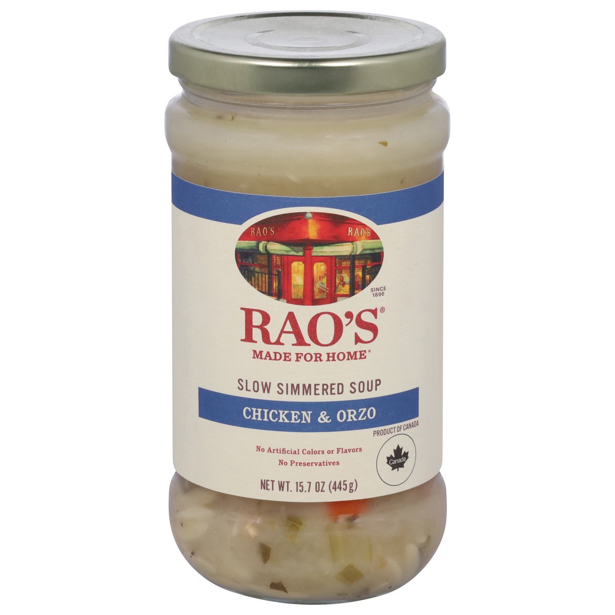 Bring home the famous taste of Raos Made for Home Soup! Our Chicken and Orzo Soup is made with a savory golden chicken broth base with vegetable chunks and tender chicken pieces complemented by al den…