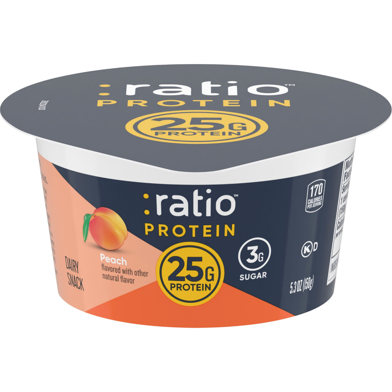 Ratio Protein Peach Flavored Yogurt Cultured Dairy Snack is big on protein AND taste. Each snack cup brings you the most protein in the yogurt aisle per serving! Tracking your macros as part of a high…