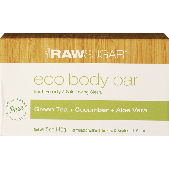 Raw Sugar Eco Bar Soap, Green Tea + Cucumber + Aloe Vera, 5 Oz