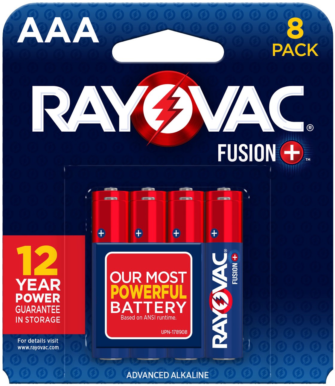 8 pack of Rayovac Fusion AA alkaline batteries. The most powerful alkaline AAA batteries from Rayovac. Ideal for today's most power hungry devices, including high-powered toys, video game controllers,…