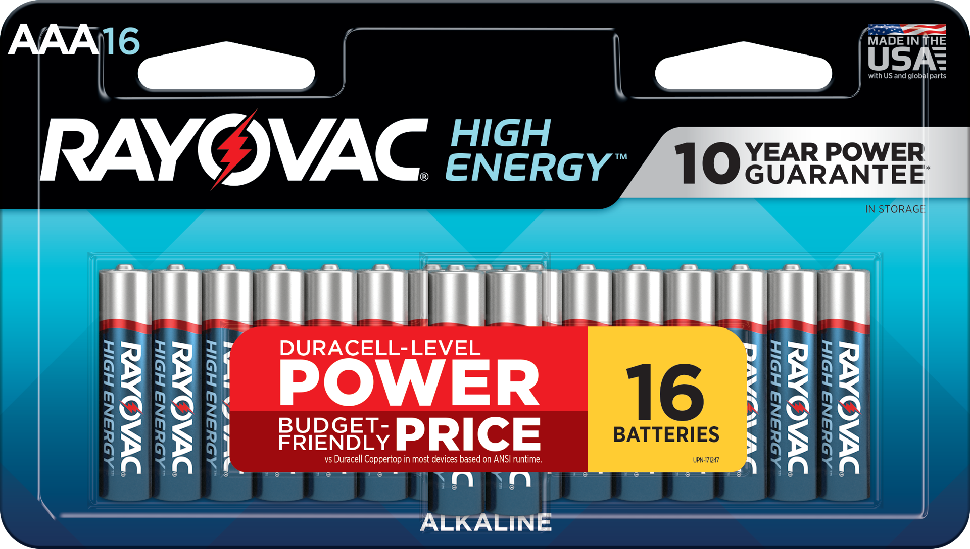 16 pack of Rayovac High Energy AAA batteries. These triple A batteries provide long-lasting power for high use devices. Ideal as flashlight batteries and in other high use devices, including wireless …