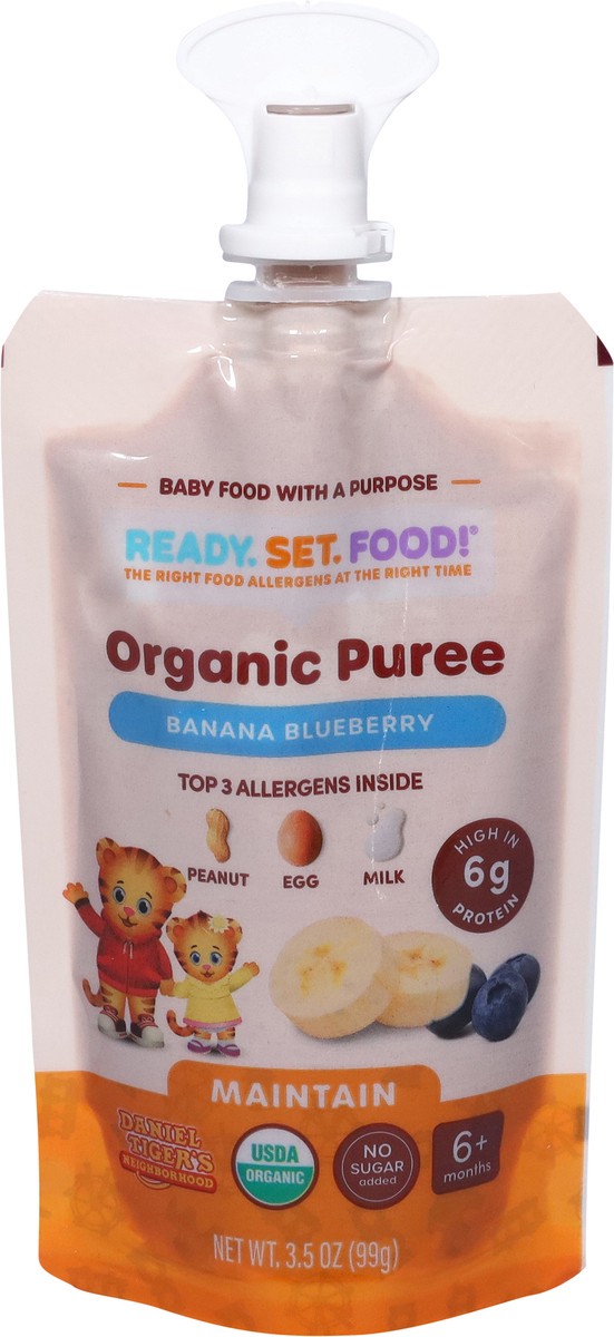 Organic Banana Puree, Organic Blueberry Puree, Water, Organic Partially Defatted Peanut Flour, Organic Milk Protein Concentrate, Organic Dried Egg Whites, Citric Acid.