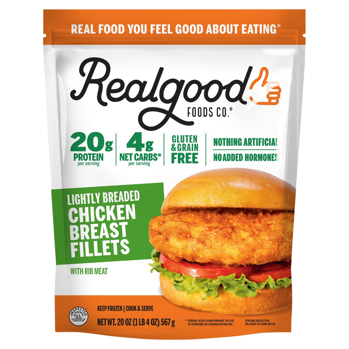 Lightly Breaded Chicken Breast Fillets Lightly breaded white meat chicken breast. 20g Protein per Fillet. Only 4g Net Carbs. Gluten Free. Grain Free. Lightly breaded with chickpea flour and egg. Nothiā¦
