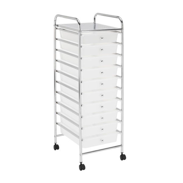 Realspace 10-Drawer Mobile Cart, 35-13/16&Rdquo;H X 12-5/8&Rdquo;W X 14-3/8&Rdquo;D, White/Chrome