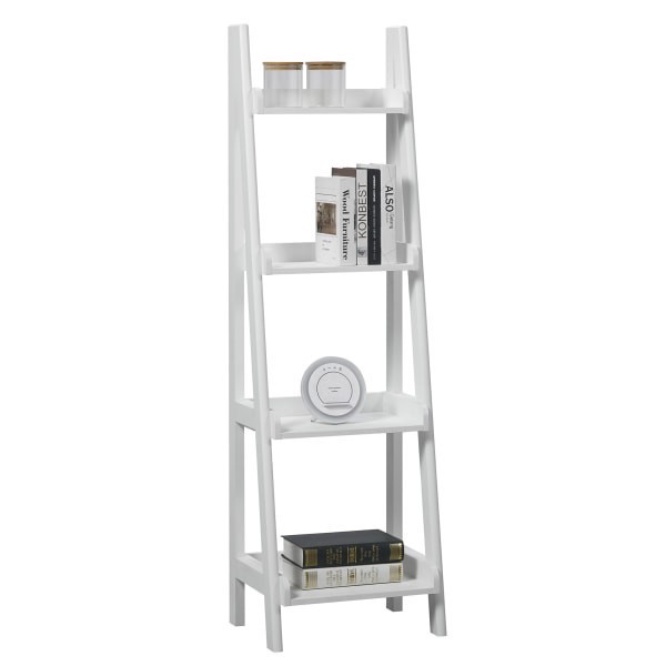 The slender silhouette of this ladder bookcase adds a touch of style to getting your books and collectibles organized. The 4 fixed shelf bookcase has built-in backstops to help keep items in place. Sp…