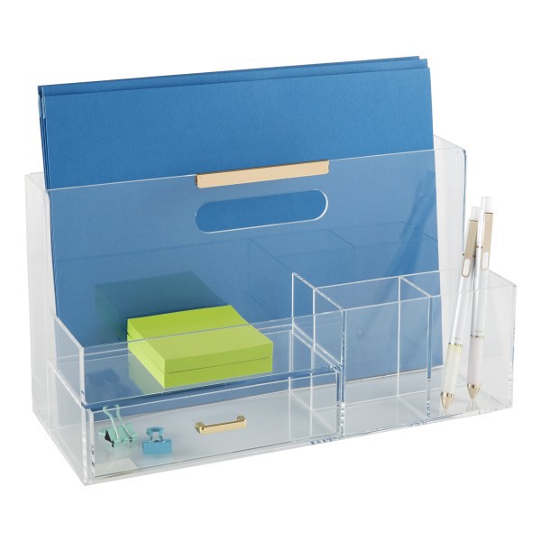 Realspace Acrylic Desk Caddy With Drawer, 6-7/8"H X 12-1/2"W X 5-3/8"D, Clear/Gold