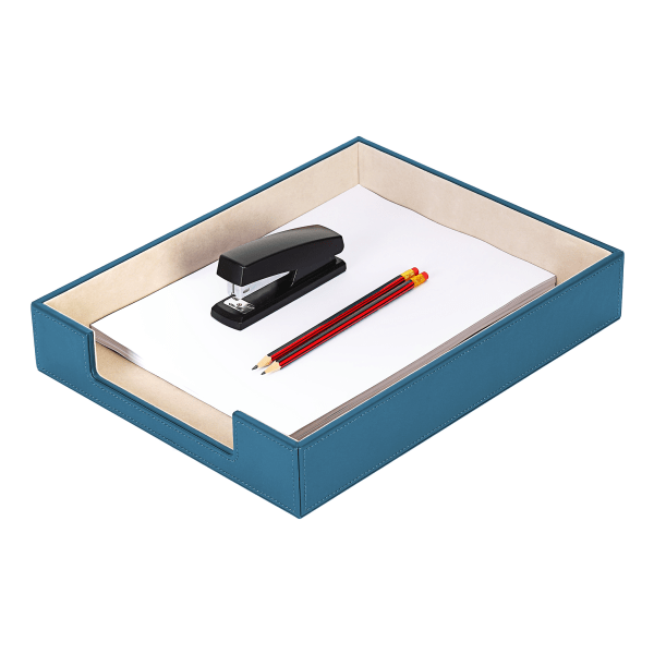 slide 4 of 4, Realspace® Azura Vegan Leather Paper Tray, 2-3/8""H x 14""W x 10-7/8""D, Blue, 1 ct