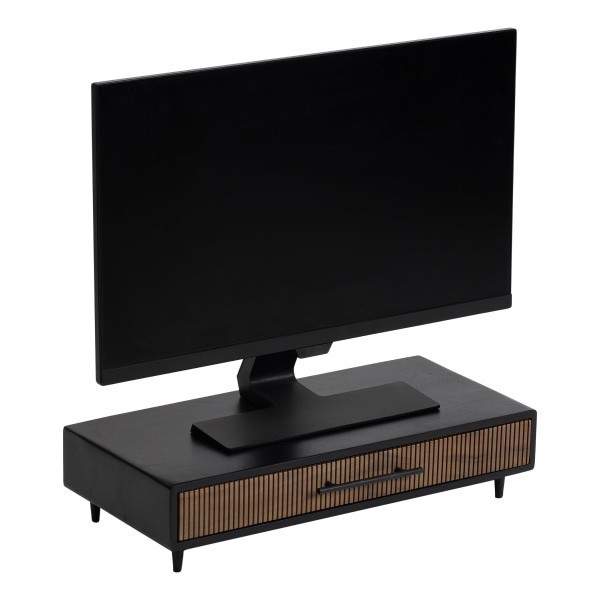 Realspace Becker Wood/Metal Monitor Stand With Drawer For 32"" Monitors, 5-1/4""H X 21-1/2""W X 10""D, Natural/Black