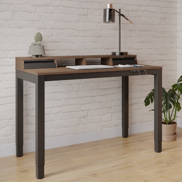 slide 7 of 10, Realspace® Bellano 48""W 4-Leg Electric Height-Adjustable Standing Desk with Hutch, Walnut/Black, BIFMA Compliant, 1 ct