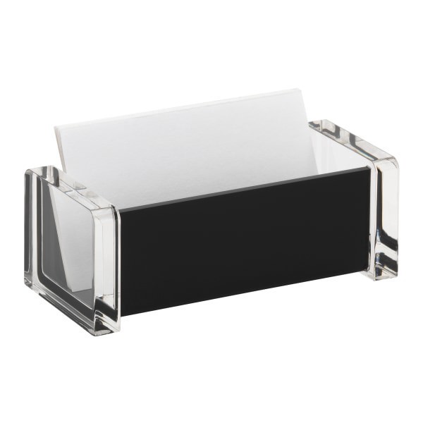 Put your business cards front and center on your desk by utilizing this business card holder. Its cool, yet sophisticated, design adds a touch of elegance to your workspace. Made from clear acrylic wi…