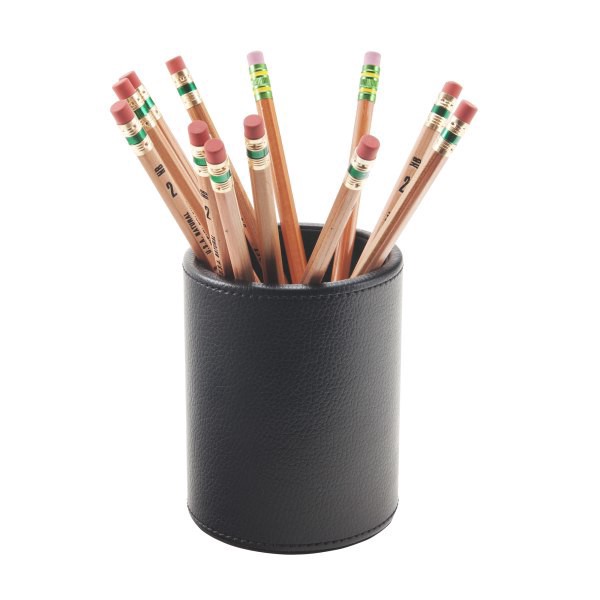 The Black Faux Leather Collection combines simple lines and luxe faux leather for a timeless office look At 4'' high, this sturdy pencil cup can hold pencils, pens, scissors and more. Keep writing uteā¦