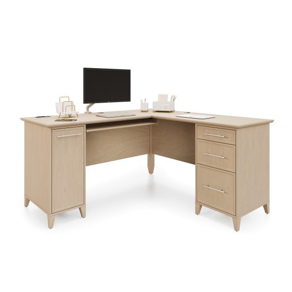 Realspace Koru 60""W L-Shaped Corner Computer Desk With Integrated Power & Charging, Natural Oak