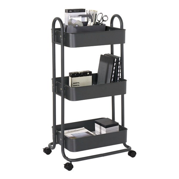 Keep office supplies, craft materials and paperwork neatly organized on the Realspace Mobile 3-Tier Storage Cart. Easily maneuver this cart throughout your home with steering handles and lockable cast…