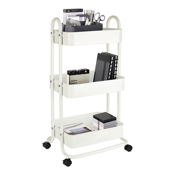 Realspace® Mobile 3-Tier Storage Cart, 35-5/8""H x 17-15/16""W x 14-5/16""D, Off-White