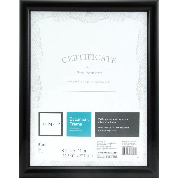 Display your favorite photos or important documents with the Realspace photo and document frame, which holds 8-1/2'' x 11'' papers and comes in black. Mount the frame vertically or horizontally to sui…