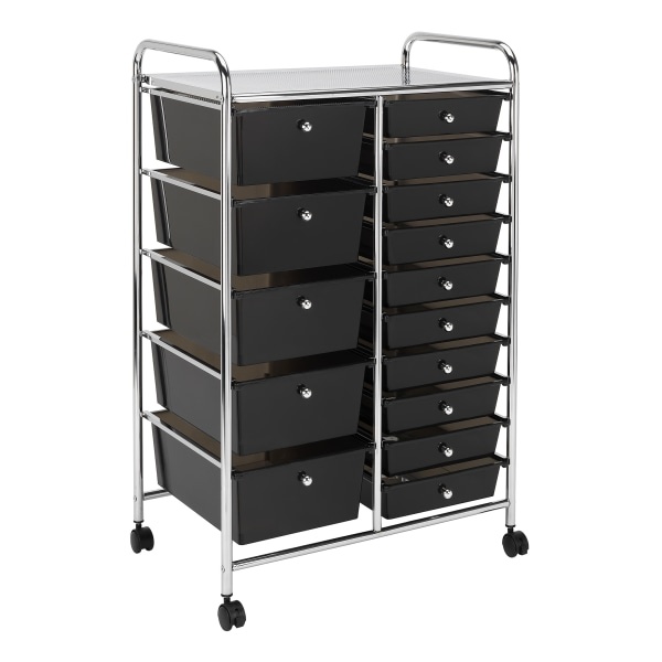 Realspace Realpace 15-Drawer Mobile Cart, 38-3/16&Rdquo;H X 25-1/4&Rdquo;W X 15-3/8&Rdquo;D, Black/Chrome