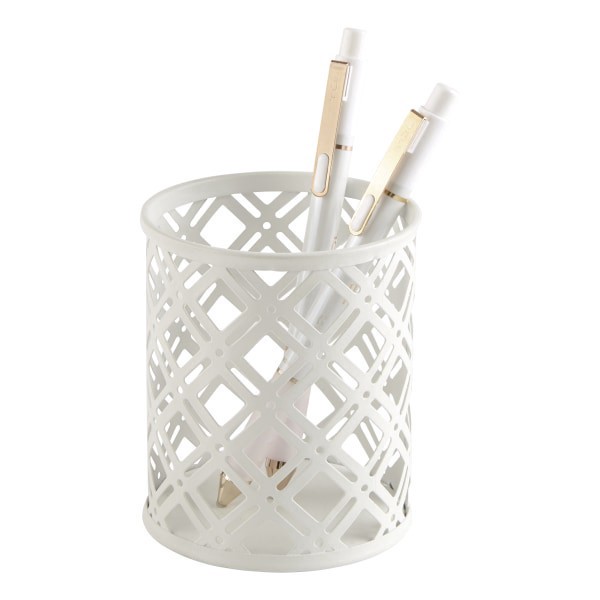 slide 3 of 3, Realspace® Streya Cut-Metal Pen Cup, 4""H x 3-1/4""W x 3-1/4""D, White, 1 ct