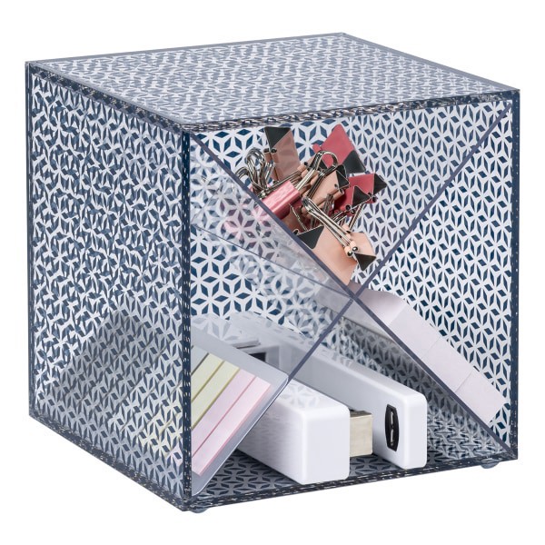slide 4 of 10, Realspace® Zora Acrylic Desktop Organizer Cube, 6""H x 6""W x 6""D, Clear/Blue, 1 ct