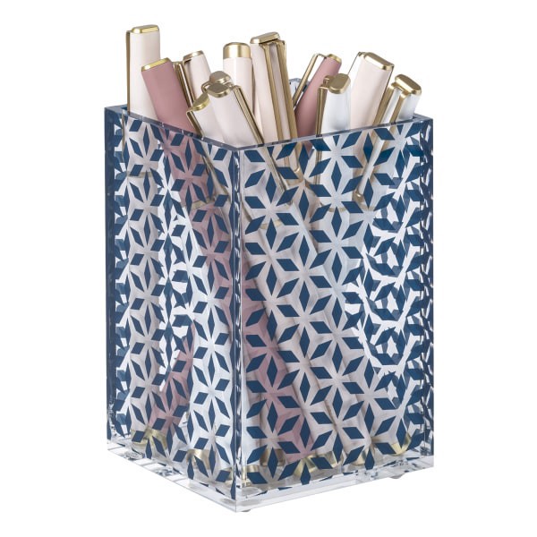 slide 7 of 7, Realspace® Zora Acrylic Pen Cup, 4-1/2""H x 3""W x 3""D, Clear/Blue, 1 ct