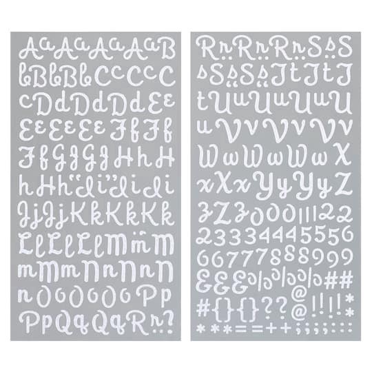 Perfect for adding bling to scrapbooks, photo albums, handmade cards and more, this set includes script uppercase and lowercase letters, numbers and symbols. Available in multiple colors. 2 sheets . R…