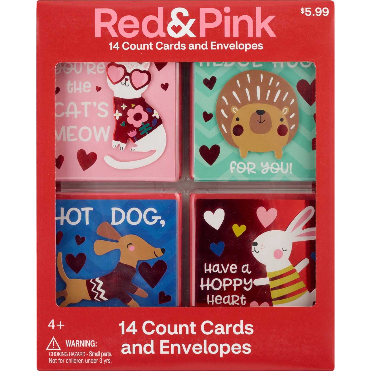 Red & Pink Furry Friends Valentine's Day Cards & Envelopes, 14 Ct