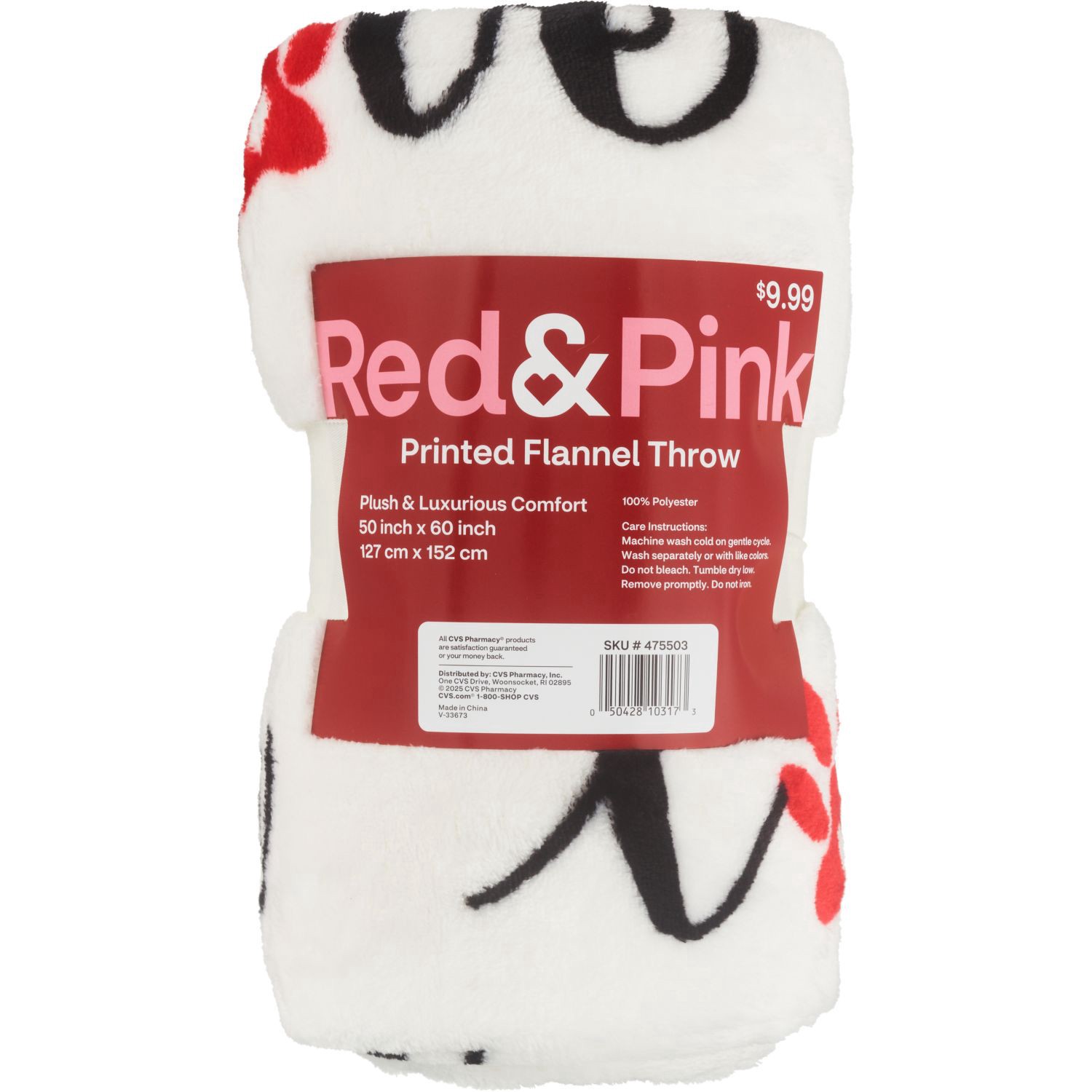 Red & Pink Paw Print "Love" Flannel Throw, 50 X 60 In
