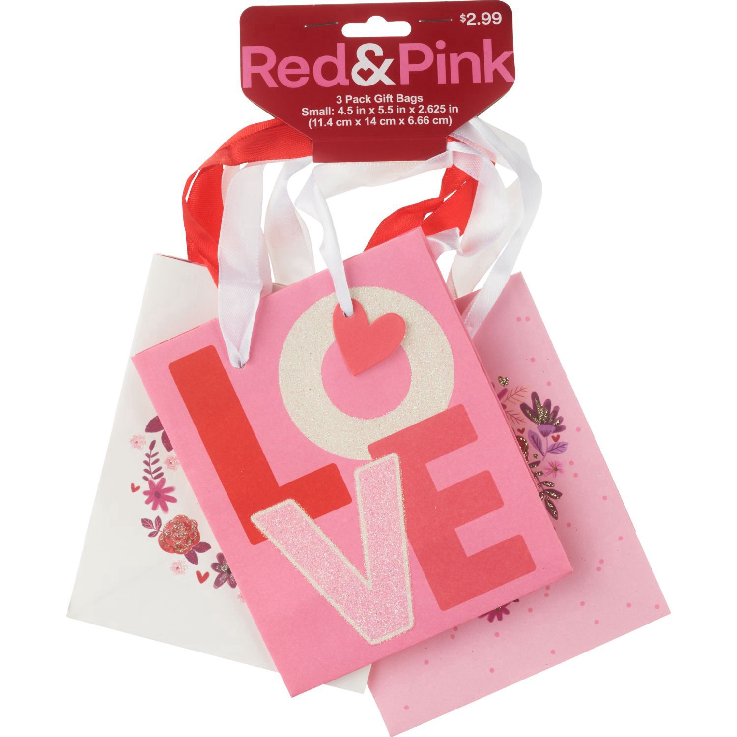 Red & Pink Valentine's Small Gift Bags, Assorted Designs, 3 Ct