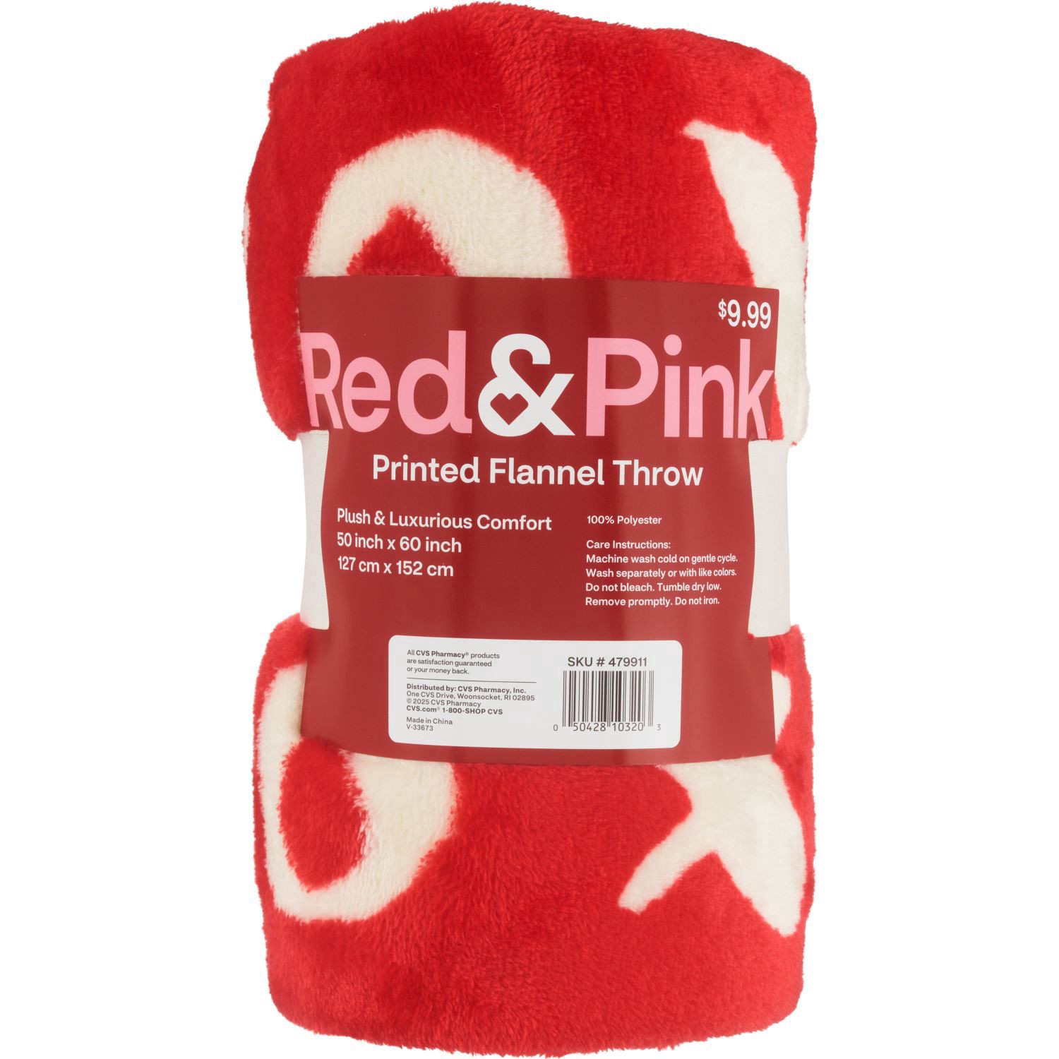 Red & Pink "Xoxo" Printed Flannel Throw, 50 X 60 In