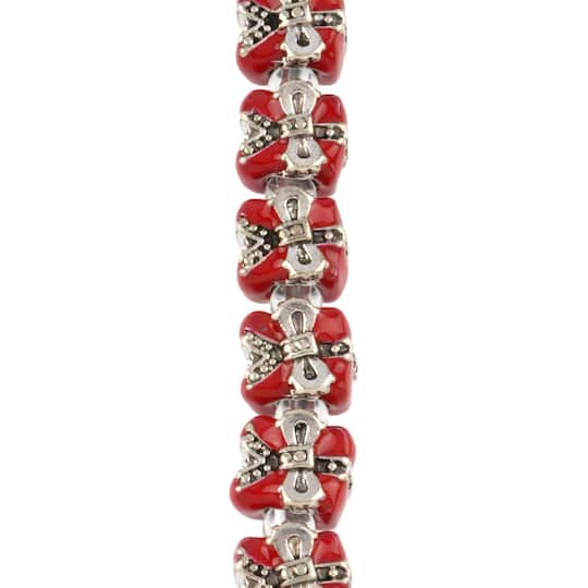 Red & Silver Bow Accented Beads, 10mm By Bead Landing