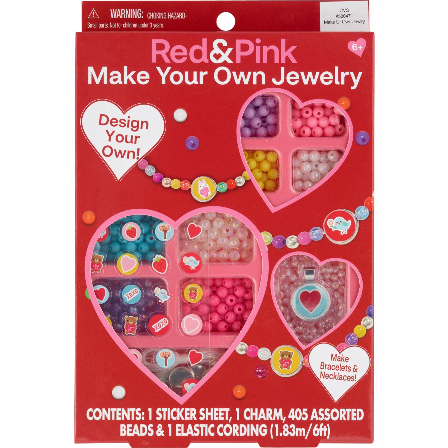 Create your own valentine jewelry with colorful beads to wear for Valentineâs day.