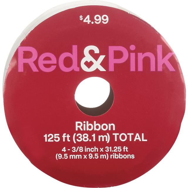 slide 1 of 1, RED AND PINK Val 125 Ft Ribbon, 1 ct