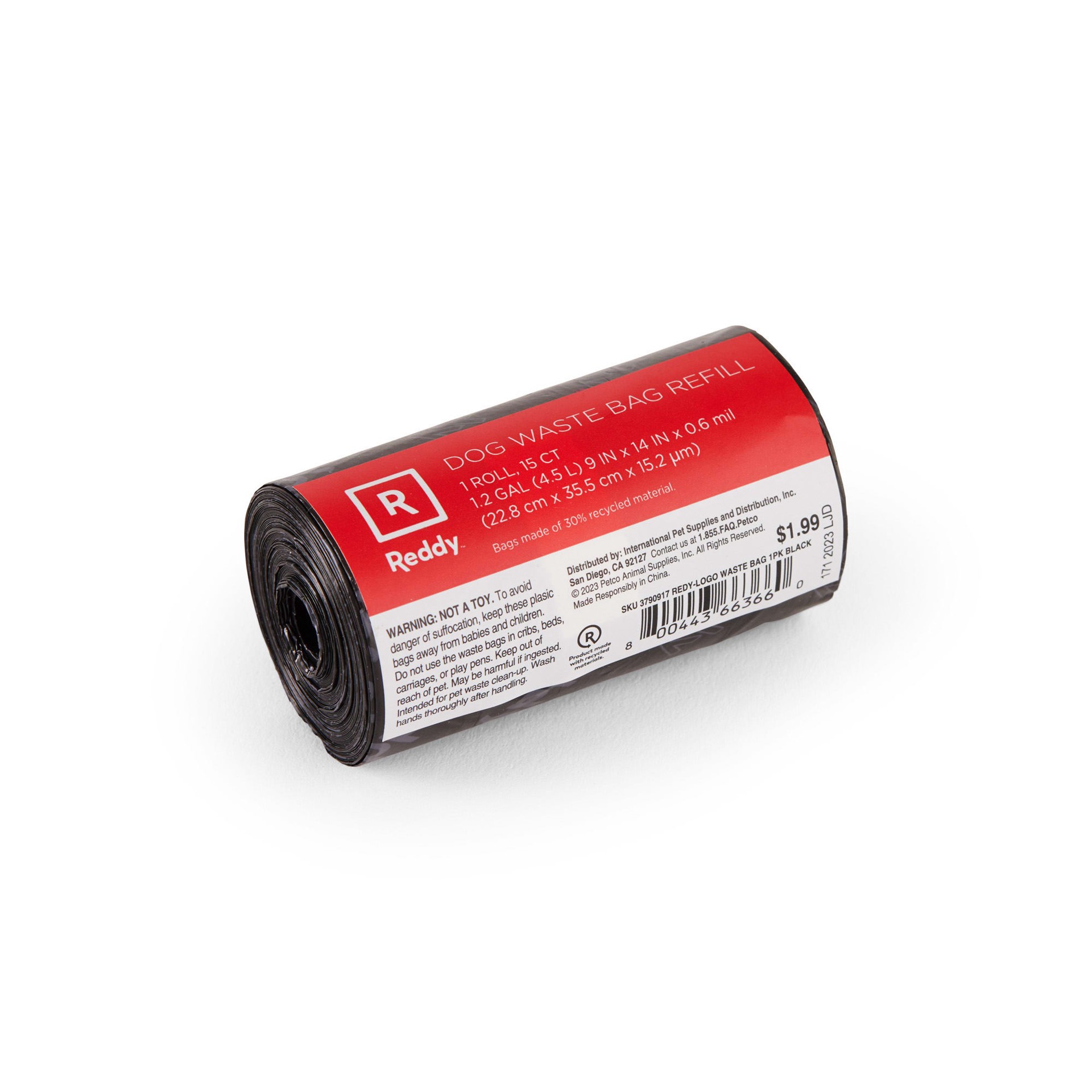 Add a pop of style to your dog's daily duties with the Logo Waste Bag Roll from Reddy. This roll includes 15 bags made of recycled materials. Each bag features the Reddy logo print.