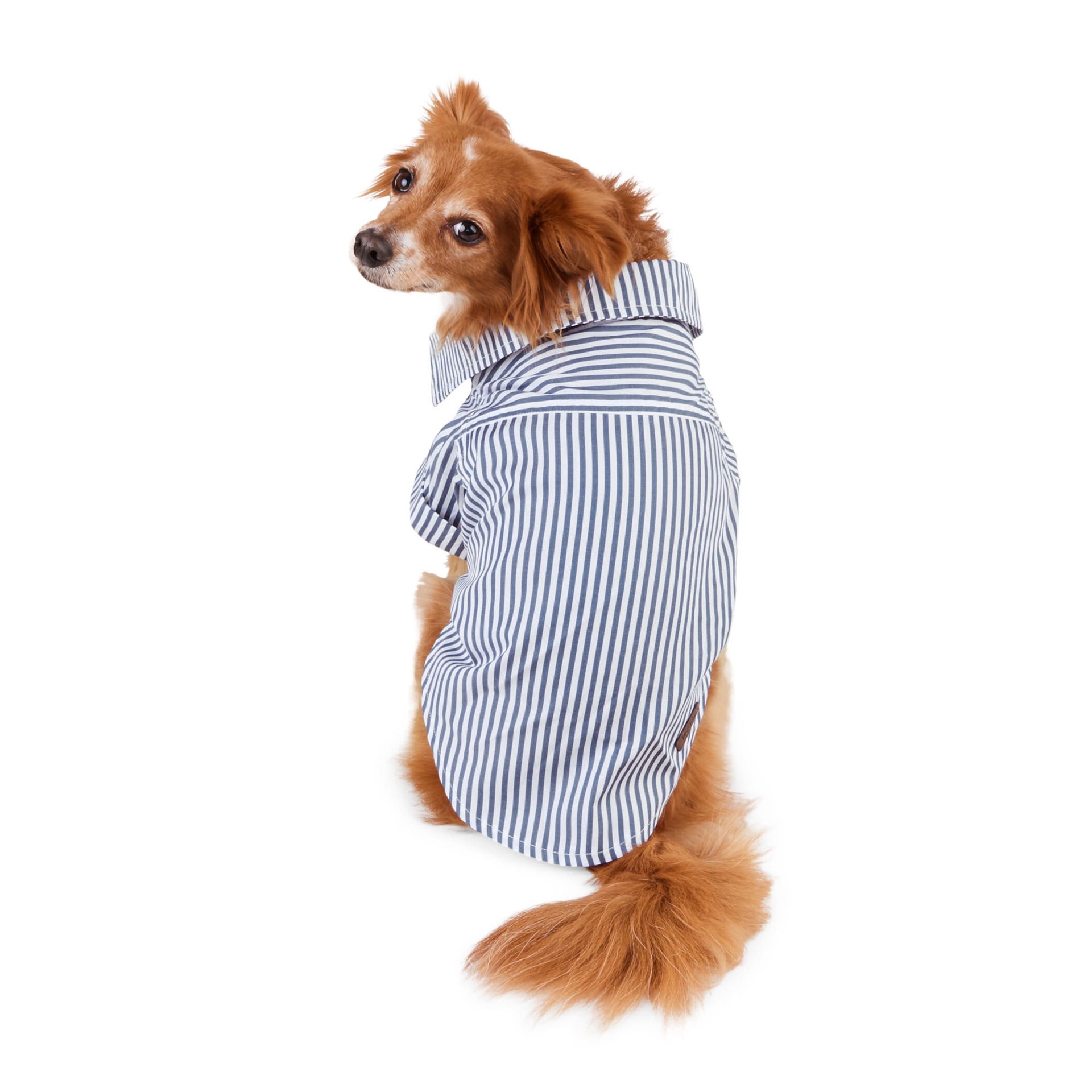 Give your pet's style a sustainable upgrade with the Railroad Stripe Shirt from Reddy. This classic button down style is made with recycled materials and is machine washable.