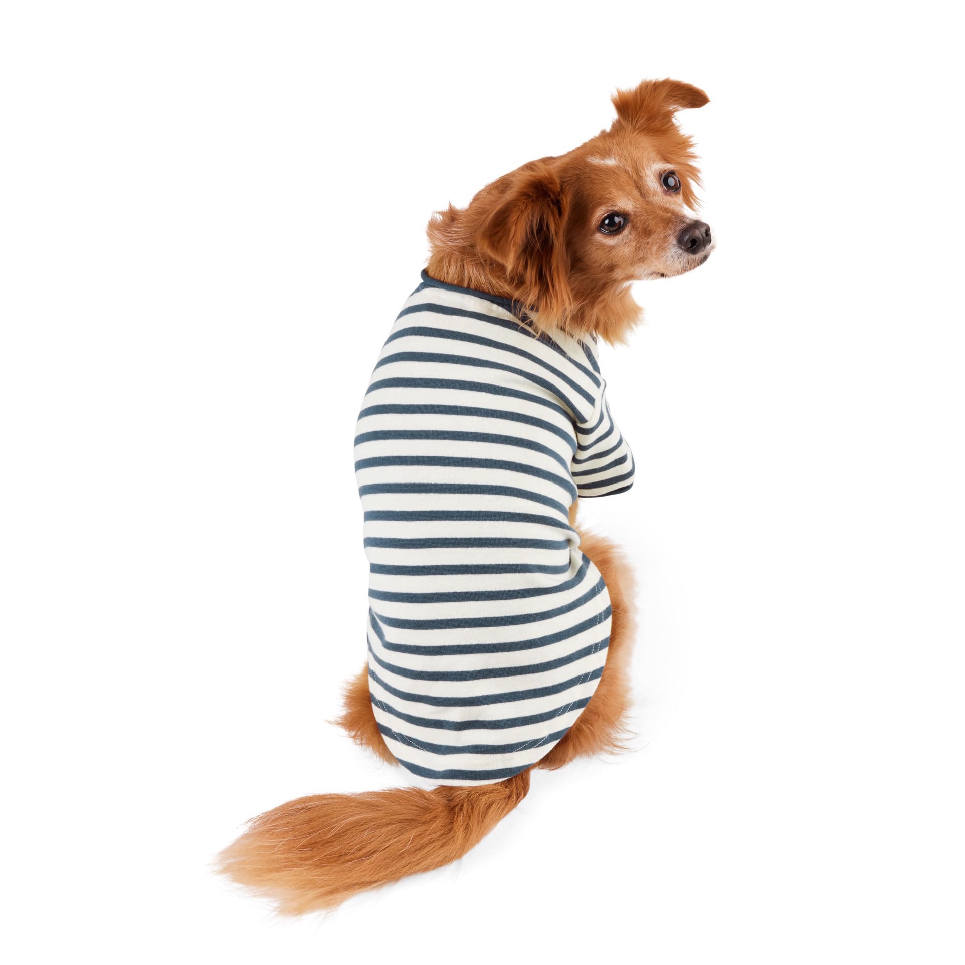 An easy, breezy, casual tee is a must-have for any wardrobe--even your pet's! Add the Reddy Stripe Tee to your pet's collection for a low-maintenance, high-style option.