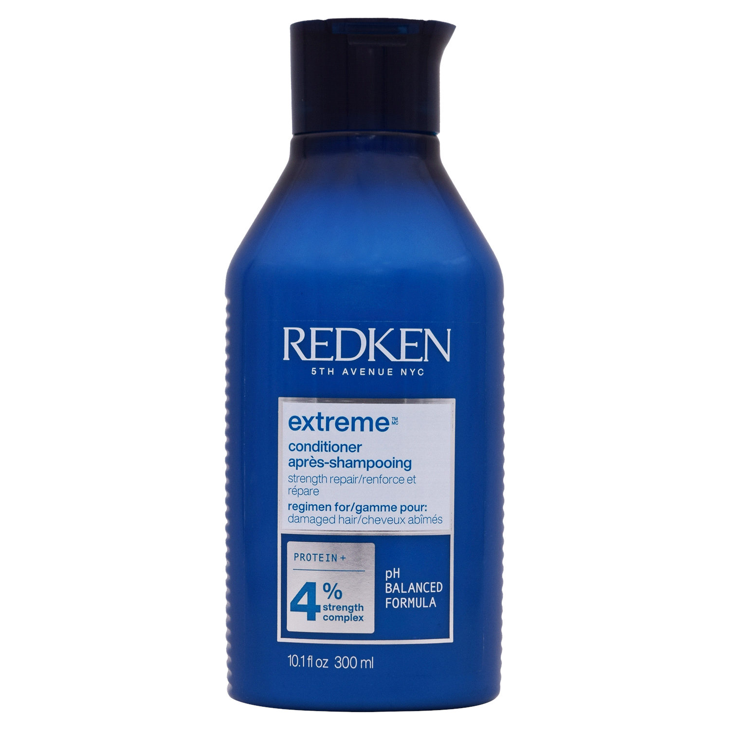 Strength repair. Regimen for: Damaged hair. Protein + 4% strength complex. pH balanced formula. Suitable for color-treated hair. Cradle-to-Cradle certified. Silver.